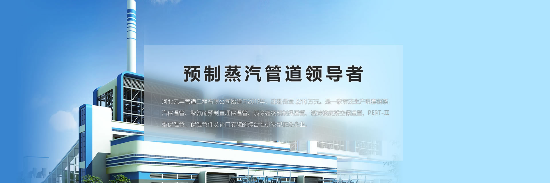 河北元豐管道工程有限公司始建于2013年,注冊資金2218萬元。是一家專注生產鋼套鋼蒸汽保溫管、聚氨酯預制直埋保溫管、噴涂纏繞預制保溫管、鍍鋅鐵皮架空保溫管、PERT-Ⅱ型保溫管、保溫管件及補口安裝的綜合性研發(fā)型服務企業。